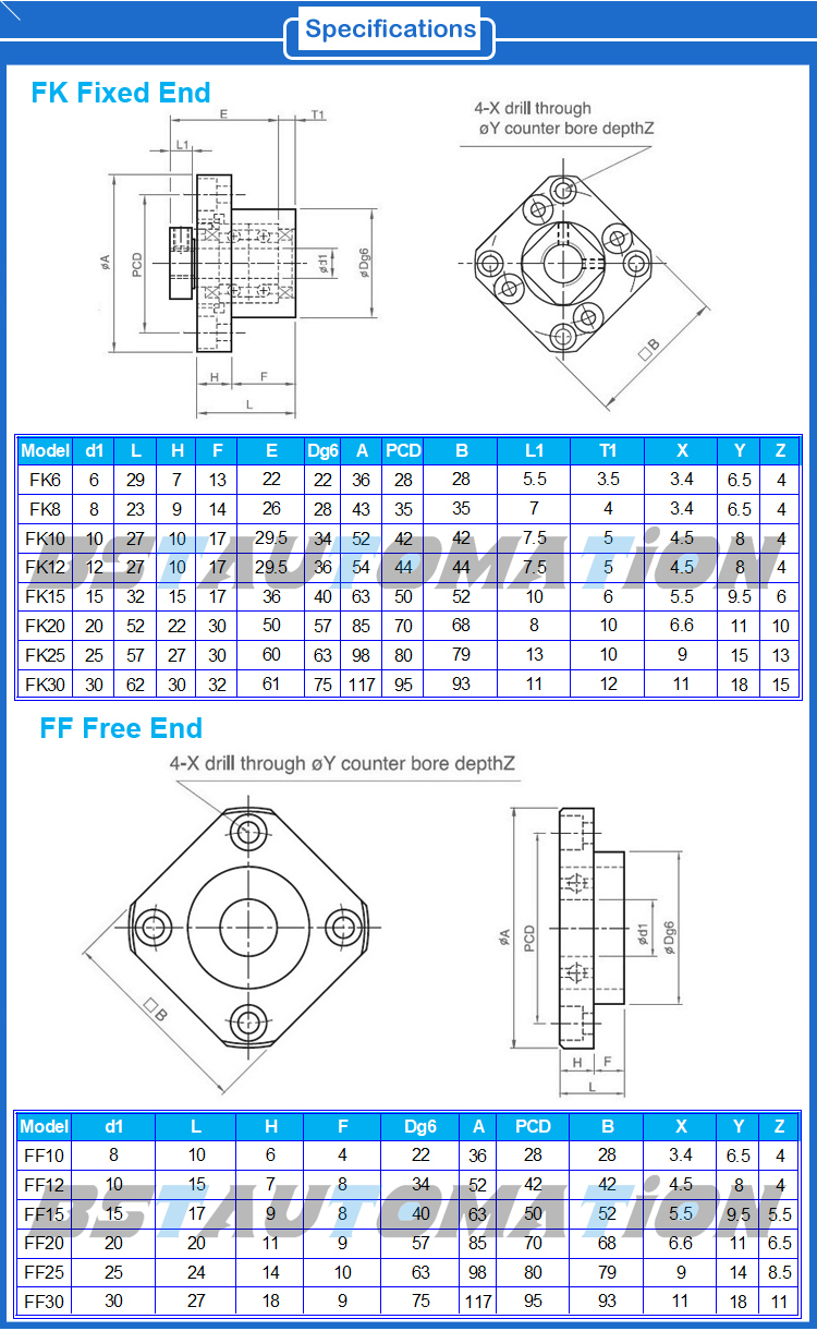 FK10 FK12 FK15 FK20 FK25 FK30 Ballscrew End Support Block FF10 FF12 FF15 FF20 FF25 FF30 FF40 Free End Support